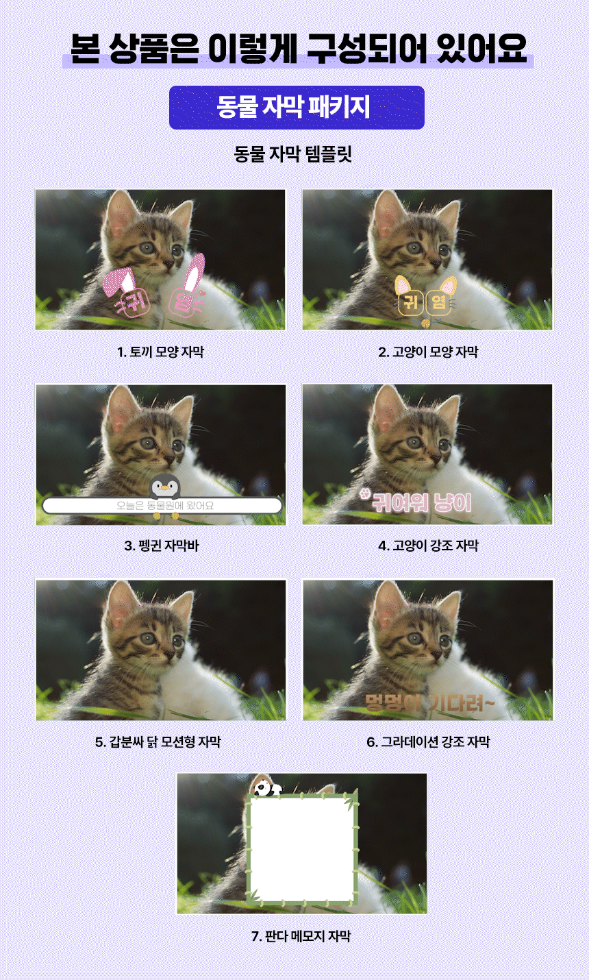 [동물 자막 패키지] 동물 자막 템플릿 7종