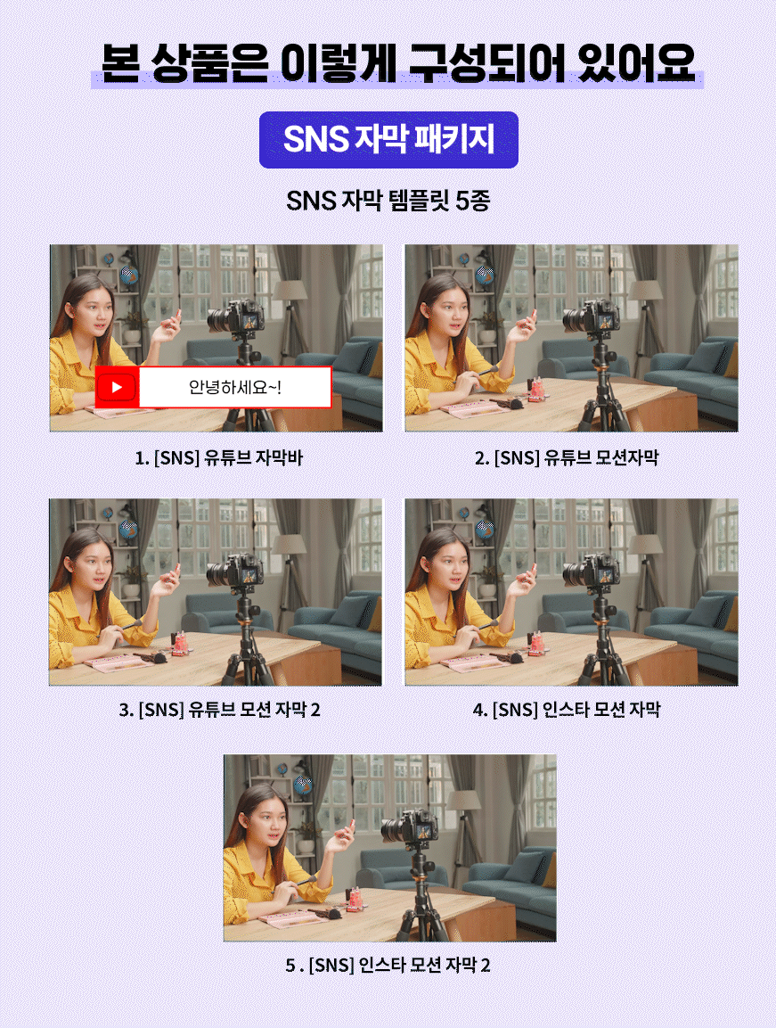 [SNS 자막 패키지] 인스타그램, 유튜브 자막 템플릿 5종